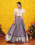 A contemporary silhouette that is all about glamour, this cream crushed tissue collar neck shirt style blouse with purple banarasi skirt is an ode to your modern muse. This charming outfit goes well with all glorious celebrations to make an extra enticing and attractive appearance.
