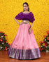 Uniquely adorned, this purple & Pink crop top skirt is a masterpiece of individuality. Each intricate stitch tells a story, making it a one of a kind outfit that celebrates the beauty of individual expression.