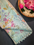 Description: A graceful white saree highlighted with watercolor-style multicolor floral motifs along the border, paired with elegant silver woven stripes. A perfect blend of subtle sophistication and modern charm.